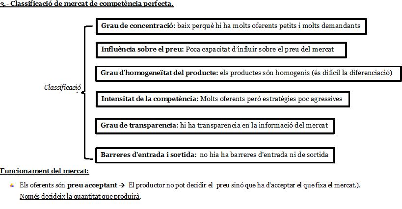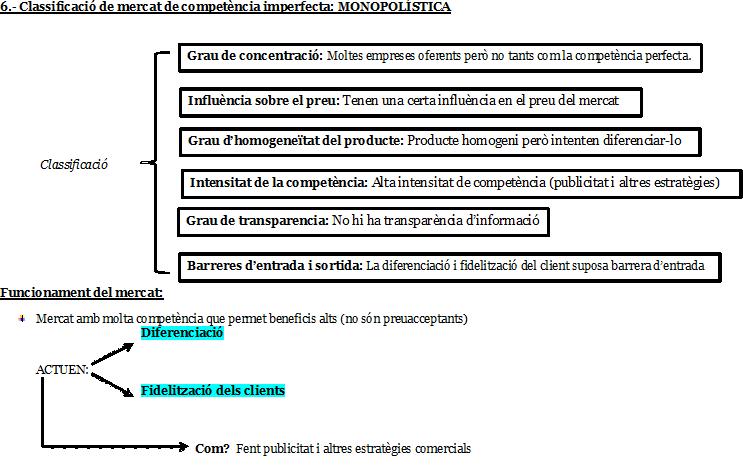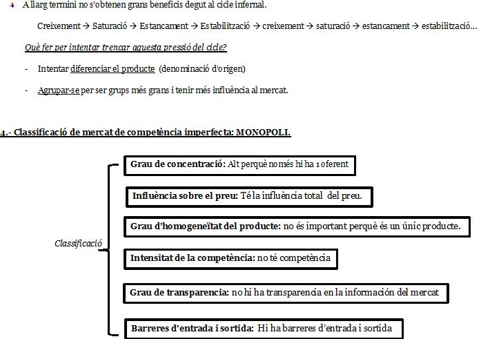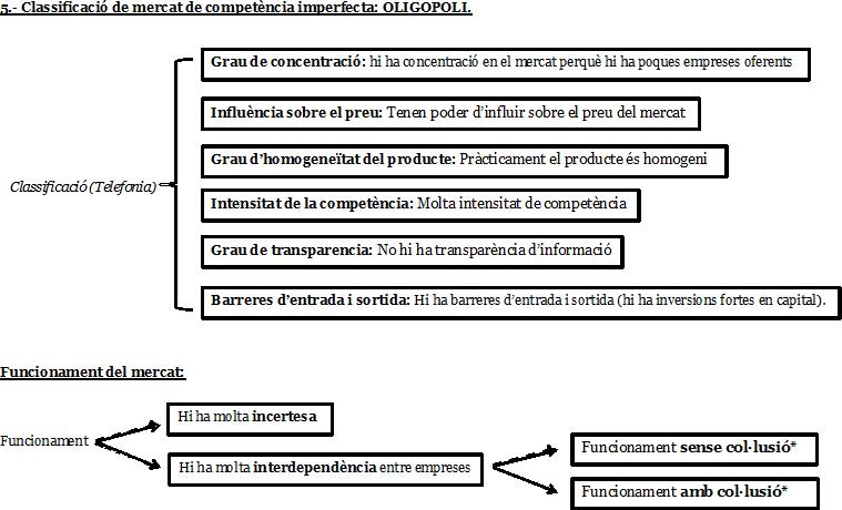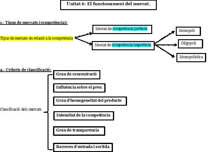 Al llarg del tema aquests mercats els desenvoluparé seguint l'esquema que hi ha. Posaré el grau de concentració que hi ha en aquell mercat, la influència que tenen sobre el preu en el mercat...