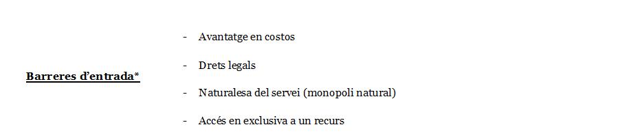 - Barreres d'entrada/sortida: Si existeix alguna barrera per entrar o sortir al mercat i poder formar part .